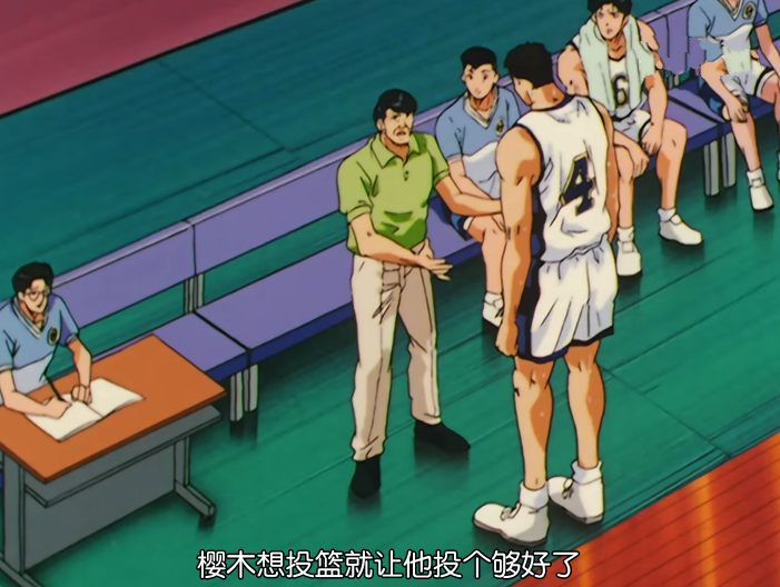 不过这是鱼住没有听到的,当鱼住下场时,田冈只是说鱼住不该犯规,让樱木去投篮好啦,语气很是平和,没有丝毫责怪鱼住的意思,相反,是极力安抚鱼住情绪的态度。