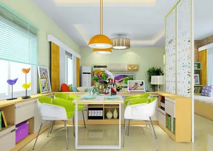 分割空间提高空间利用率,又不产生拥挤感,就可以选用玻璃、布帘、屏风等不仅分隔空间、起到装饰效果,又不会显得拥挤。分割时若使用储物柜,还可以起到收纳的作用。