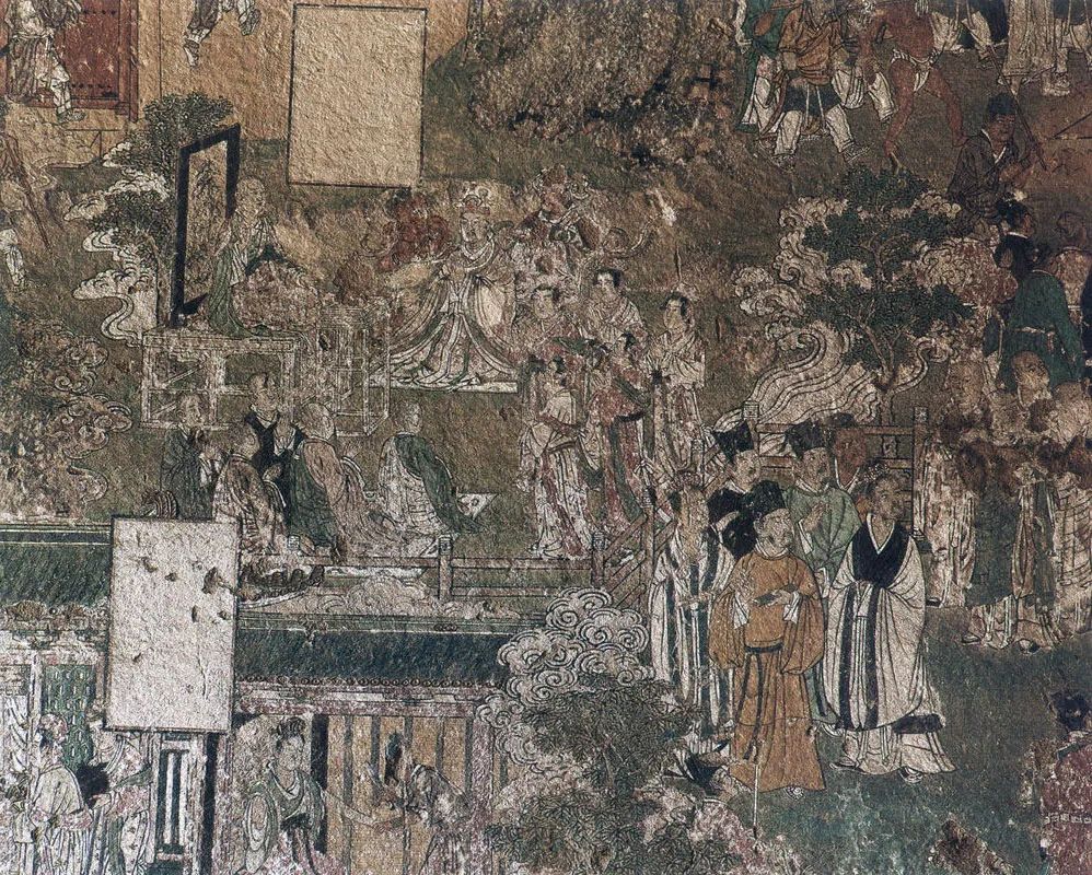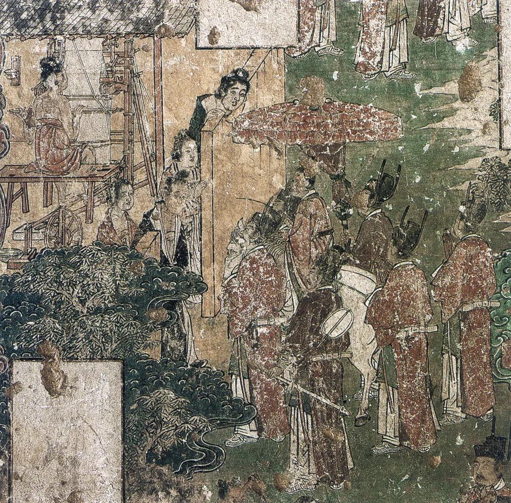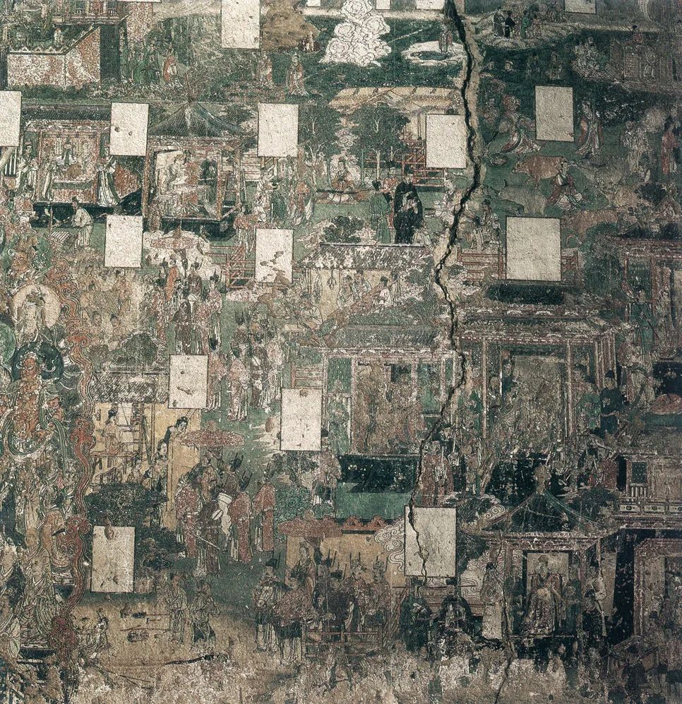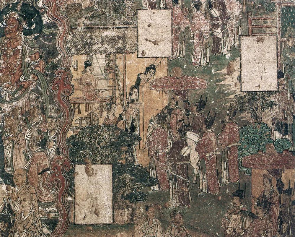 北面一组为《善友太子本生》,见《大方便佛报恩经》。讲善友太子观耕、渔、织,关心民众的故事。
