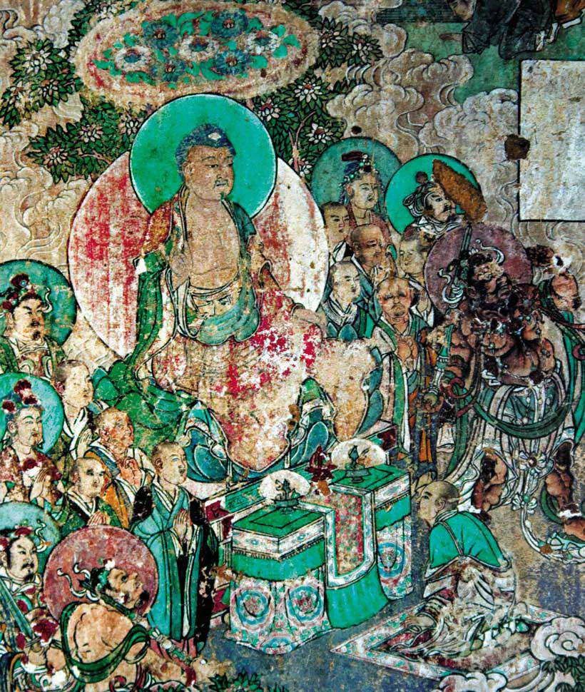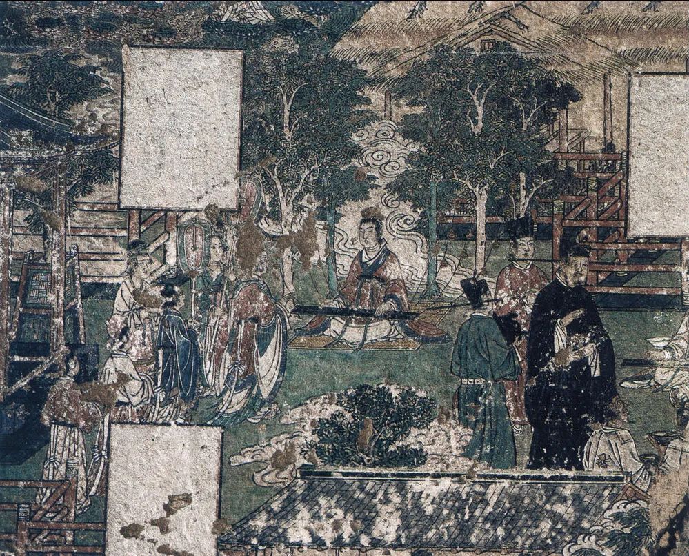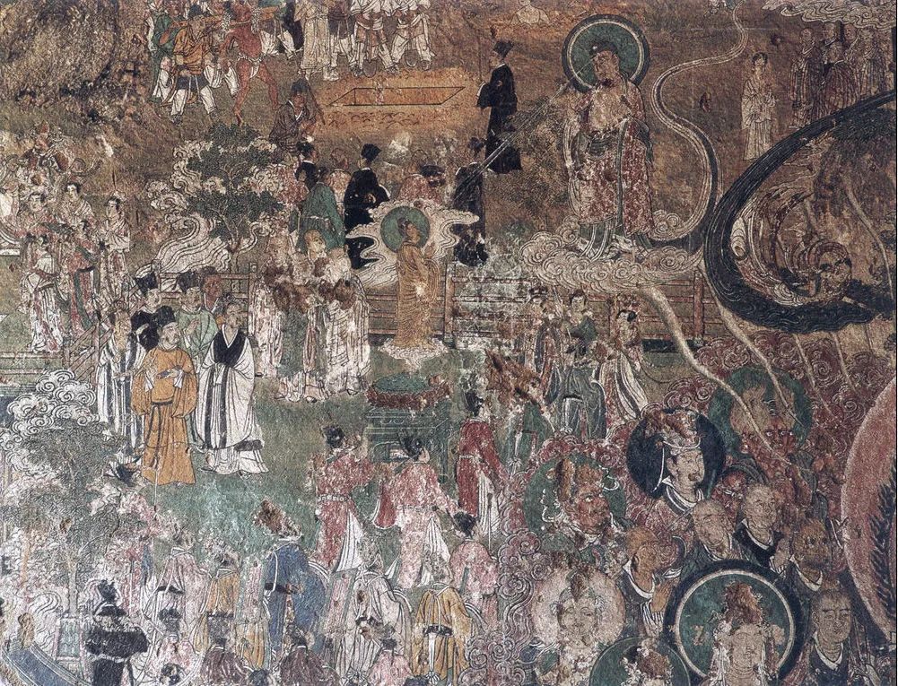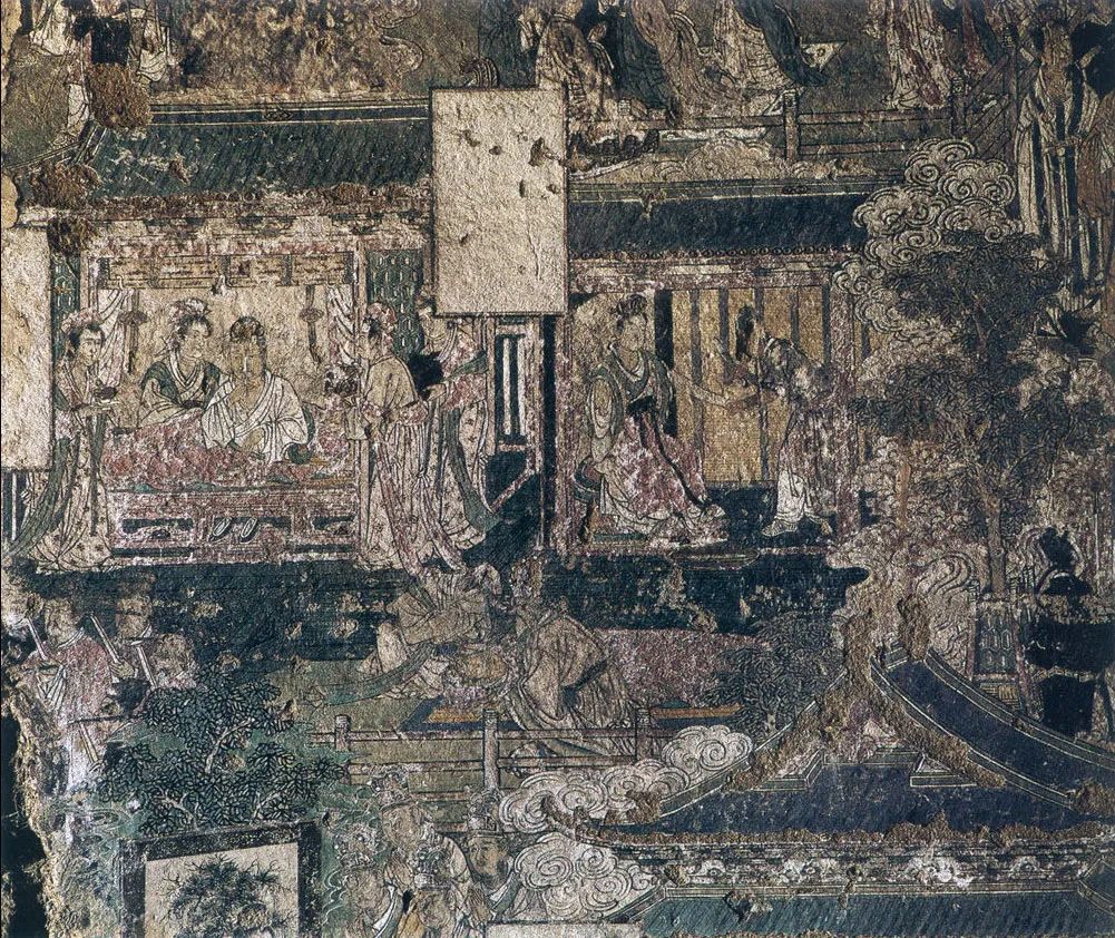 北面一组为《善友太子本生》,见《大方便佛报恩经》。讲善友太子观耕、渔、织,关心民众的故事。