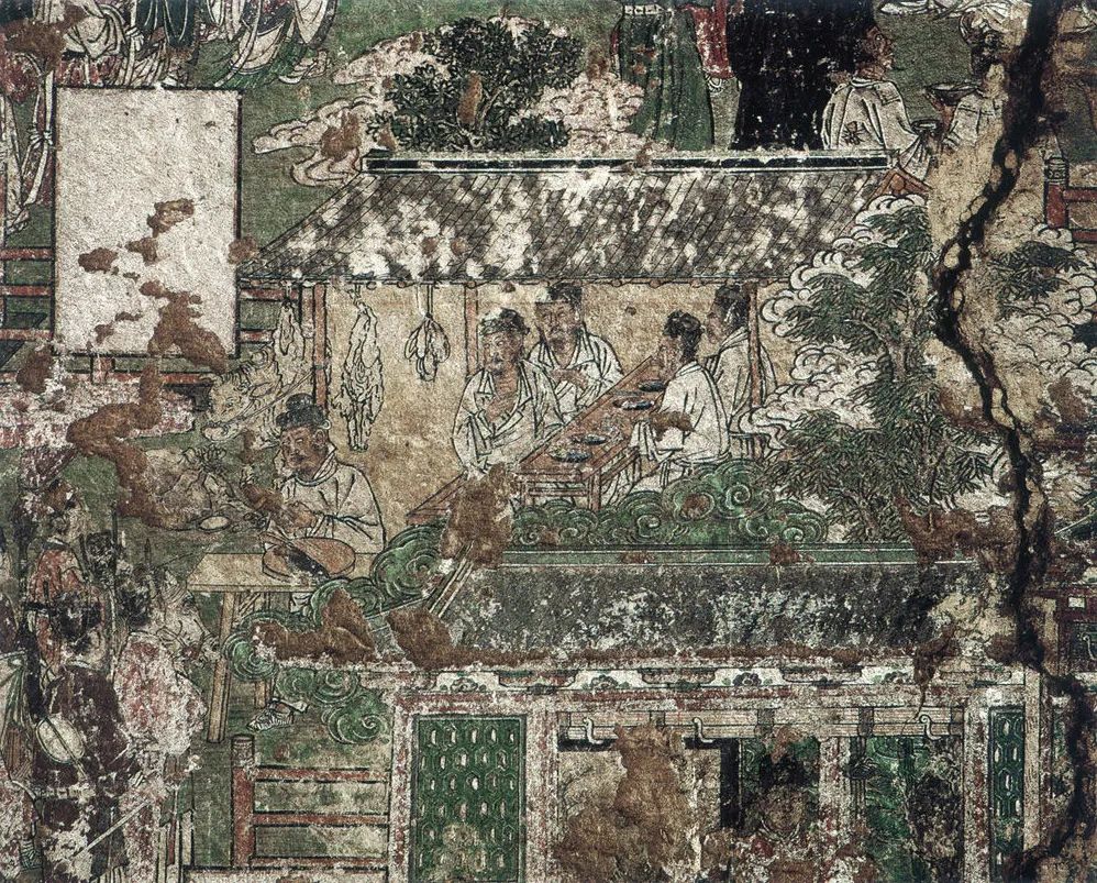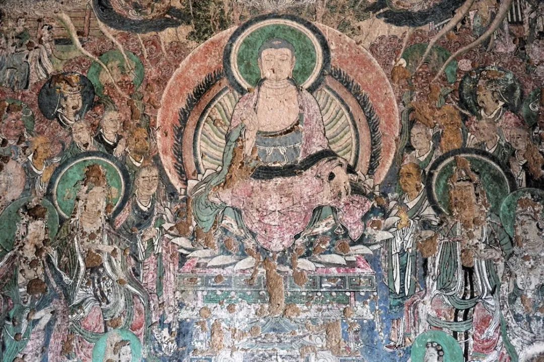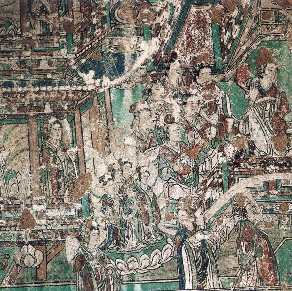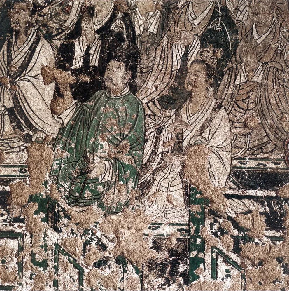 北壁东面一组,亦为本生故事。由于历史久远,人为破坏,画面溃甚。下面有供养人一排。内容难辨,造就遗憾。