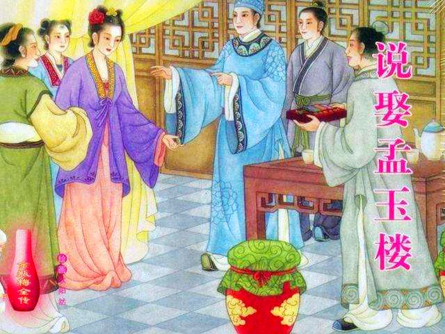 同其他小老婆进门的方式不同,孟玉楼是西门庆明媒正娶进门的,是有着媒妁之言的,丈夫死了先是由官媒婆薛嫂做媒,征得族中长辈杨姑娘的同意,然后再安排二人相看。一个英俊潇洒,一个风流俊俏,二人一拍即合,当下定了聘礼,定下日子迎娶,完全是走程序,二人是非常正常的一段婚姻。