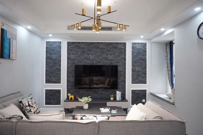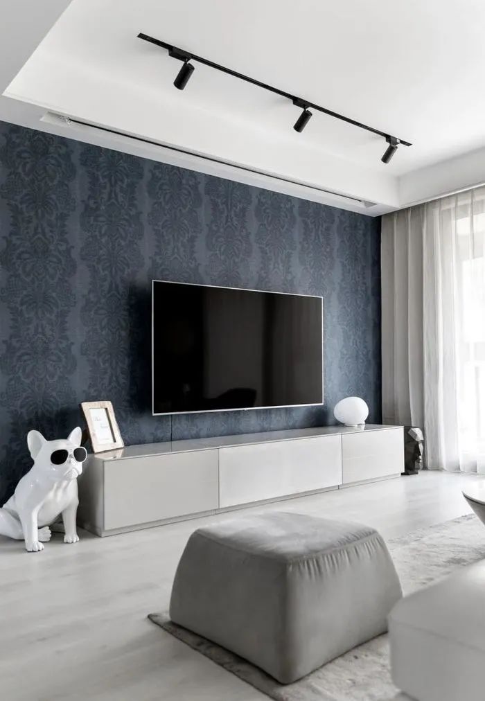 客厅的背景墙多种多样,小编偏喜欢简约一点的。简约款电视背景墙的建议可以刷乳胶漆哦,一个是成本不算高,而且还好看,显时尚。