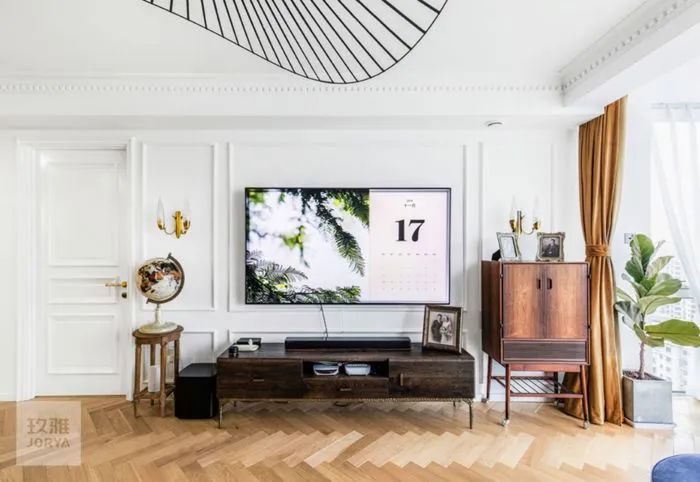 在普通的墙面上做点线条加以修饰,就能得到轻奢复古又有风情意味的背景墙。不论客厅背景墙是白墙、还是刷颜色或者贴壁纸,都很好看。