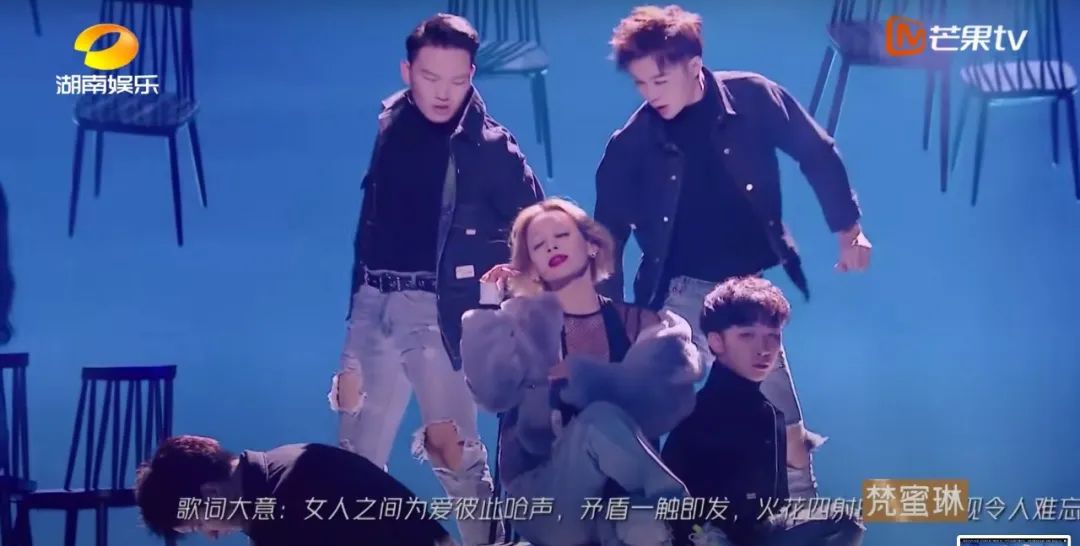 但非常遗憾的是,在《浪姐》中,中文歌歌词被以歌词大意的形式呈现,且歌词含义被描述为女性为爱呛声,争夺男人的激烈场面,将歌曲本身所蕴含的女性色彩削弱了太多,改成了一版宫斗般“自我戕害”的《傲娇》。