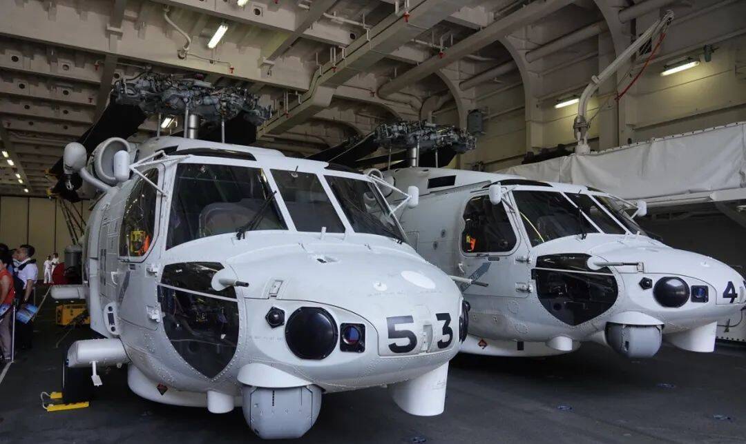 “出云”号机库里停放着的美国SH-60系列反潜直升机