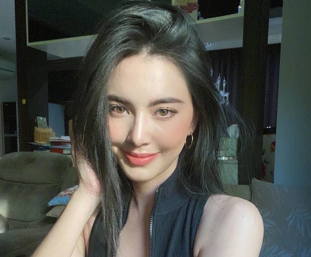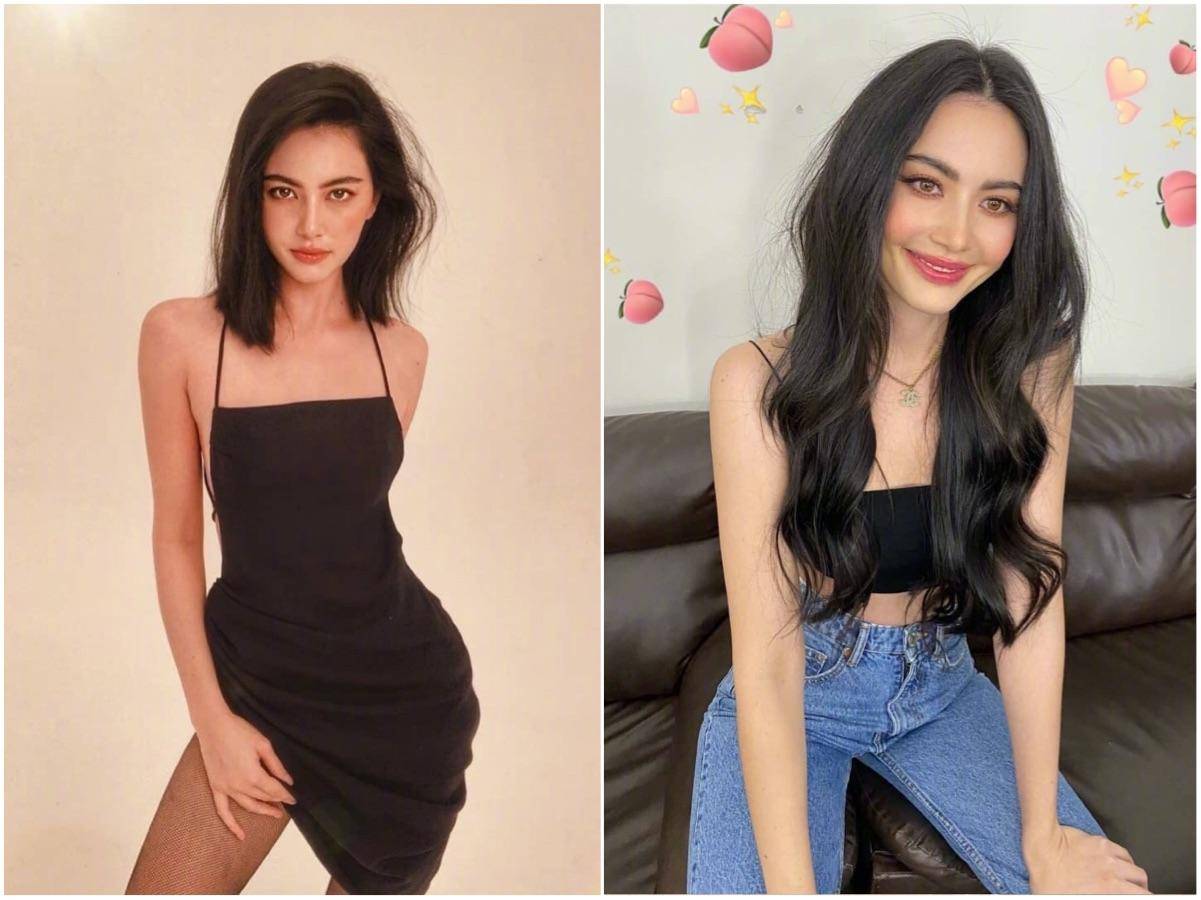 黑色吊带连身裙简洁的设计,把Mai的曼妙身材呈现得淋漓尽致。