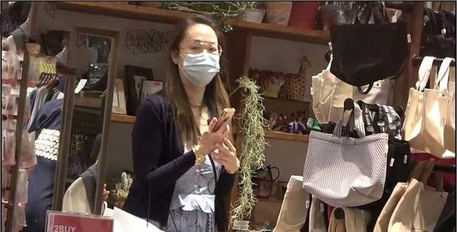 今年已经47岁的童爱玲,虽然一直戴着口罩,但仍能看出皮肤滑嫩,保养得宜,丝毫没有为生计操劳的痕迹。结账时,童爱玲推着购物车把所购商品放到购物台上,或许是因为动作幅度大,她弯腰时还险些走光。