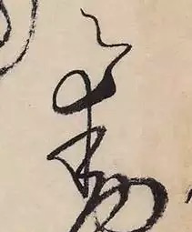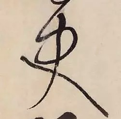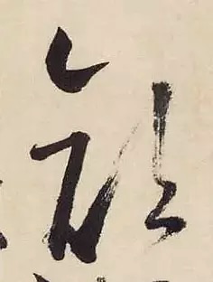 “则”字的第一笔部位是明显的骤然停顿,这是一个在连绵线条中突然出现了停顿的典型例子,这种写法在张旭的《古诗四帖》中出现较多,这种停顿和“颠”字的三点停顿不一样,“颠”字的三点是不连贯,而这个”则“同我们在魏碑中所做的线条变速是同一个道理,是在行笔快速的时候突然出现的减速现象,然后继续连贯;