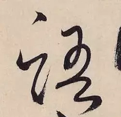 在《自叙帖》中有一些这样的典型例子,比如“语”字的言旁,就《自叙帖》的流畅性而言,这个地方一般不会这样写,但它会出现一些奇怪的现象,它也会出现和上下语调不同的线段,所以,给人以行笔过程中突然停顿的感觉,这个线条在这里就不流畅了,这就是停顿。