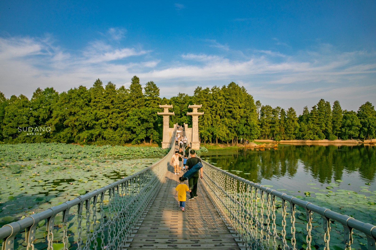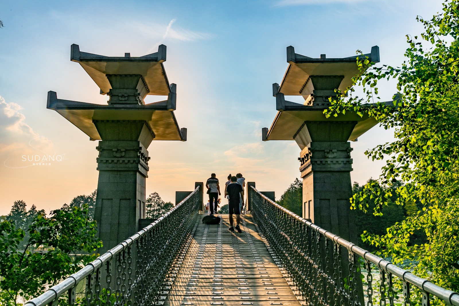 这座索桥类似于网红吊桥,人站在上面,可以进行摇晃。此桥也常成为新人拍摄婚纱照的背景图。过了雁洲索桥,即可抵达芦洲古渡。