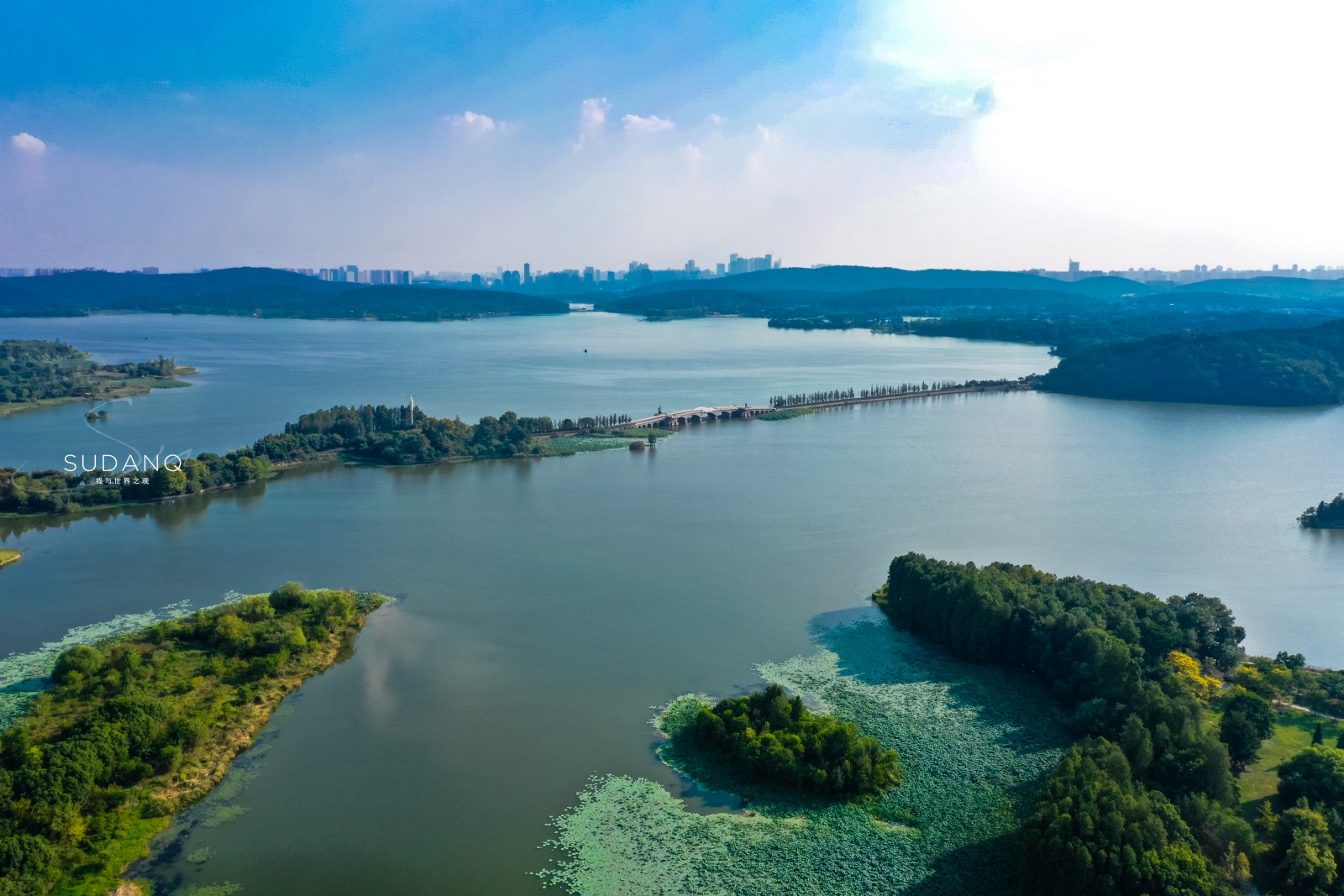 它北依白马景区,南与磨山景区隔湖相望,其陆地面积4.7平方公里,水域面积3.46平方公里,由四个伸向水中的半岛组成,是既有湖泊,也有湿地,更是武汉市古树名木资源最集中的地方,拥有最具观赏价值的古树名木群落。
