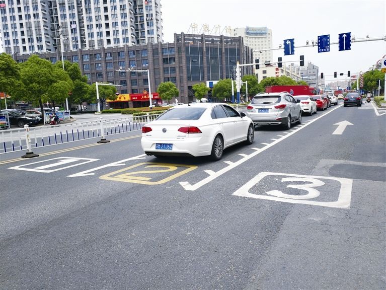 可变车道就是大家平时说的锯齿车道,可变车道一般都是直行和转弯之间的变化,是随时调整的,有时候只允许直行,有时候只允许转弯。可变车道的中间没有导向线,车道内空白的。