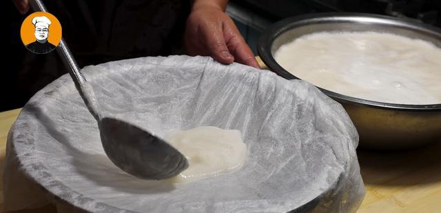 5、再把藕块放入料理机中,放入适量的清水,盖上盖子打碎,打的越细腻越好,打好后倒入盆中。再把打好的藕糊过滤一下。再把纱布扎紧把水分挤出来。再放入清水把藕渣多冲洗几遍