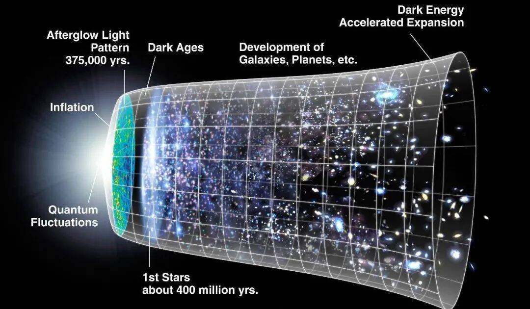 约在138亿年前,一个事件催生了高热量和大量密集的中子和电子。随着时间的转移,这些颗粒开始连接在一起并诞生出氢原子。