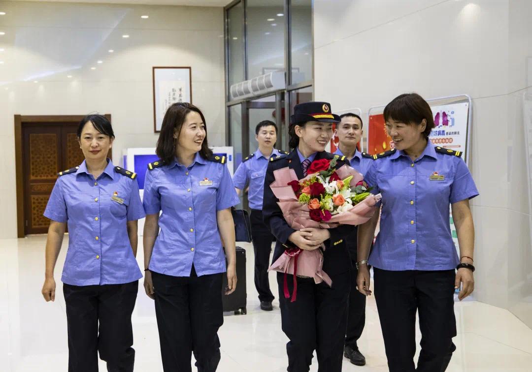 9月8日晚的呼和浩特站也有一些不同,获全国抗击新冠肺炎疫情先进个人称号的呼和浩特客运段列车长张敬钰乘坐G2489次列车抵达车站。在站台上等候的同事为她送上了鲜花和掌声。