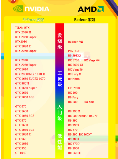 1.以下是显卡天梯图2020最新版本。主要比较的是Nvidia和AMD这两个主要品牌。