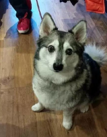 不过,凡事不能讲得太绝对,下面这只狗狗名叫Pomsky,它也是二哈的混血。