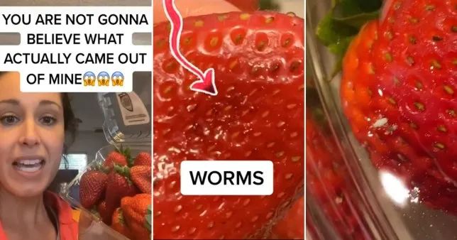 daily mail:Horrifying TikTok videos reveal BUGS emerge strawberries theyre submerged salt water