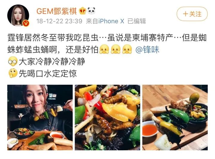 荒川真衣在Ins上晒出自己的昆虫料理