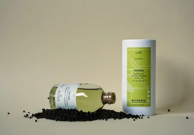 还有一款蚕沙白兰地,所用蚕沙来自山梨县富士川町养蚕人,选用蚕宝宝最新鲜的粪便,经过仔细干燥和热处理制成。