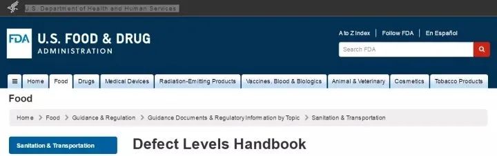 FDA的食安标准够严格吧?他们出过一本关于各种食品缺陷水平标准的手册。