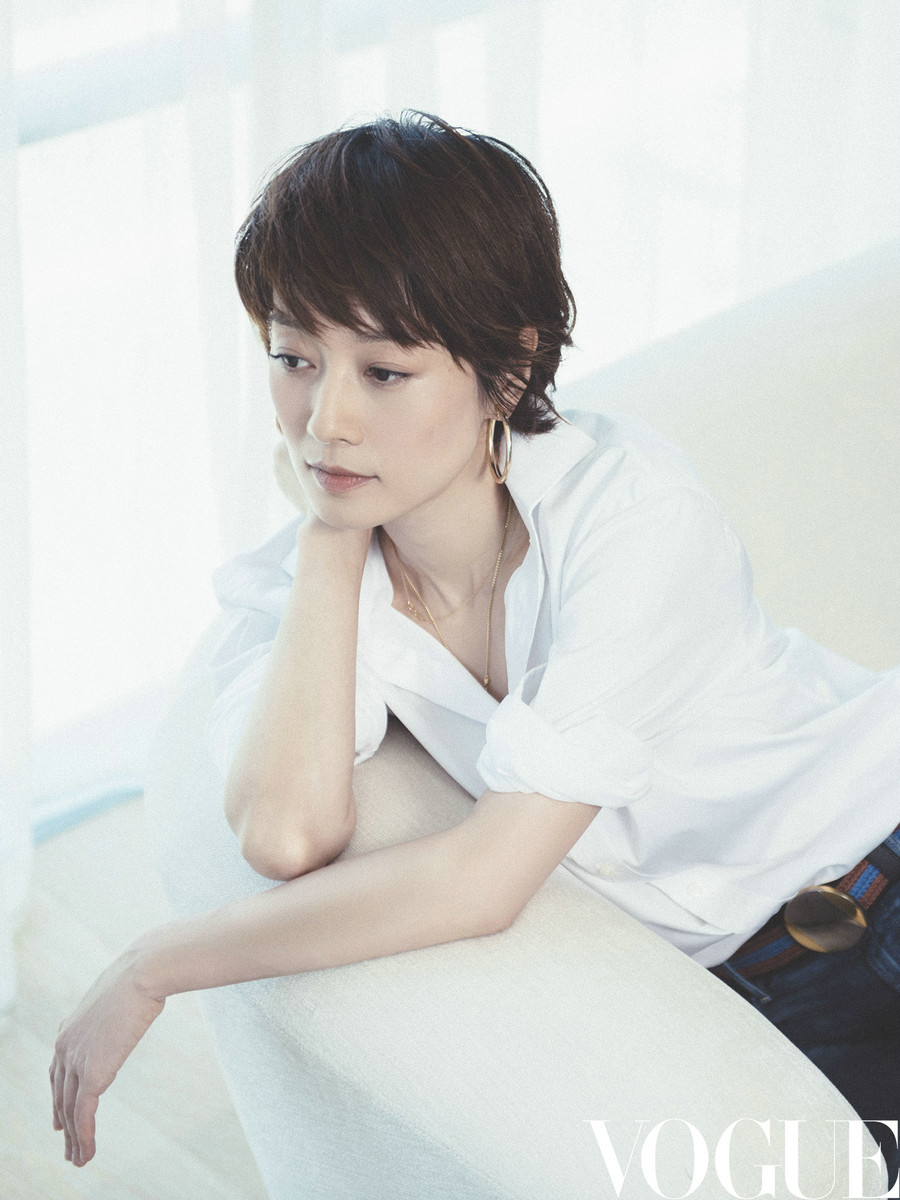 近日,马伊琍释出一组为《Vogue》杂志拍摄的写真。马伊琍身穿立领白衬衫和小白鞋,搭配喇叭侧开叉牛仔裤和圆形金属耳环。极简造型尽显干净温柔气质。大片中,马伊琍或倚靠在沙发上微笑,或眼神淡然地眺望远方,整体画风呈现出静谧和谐之美。