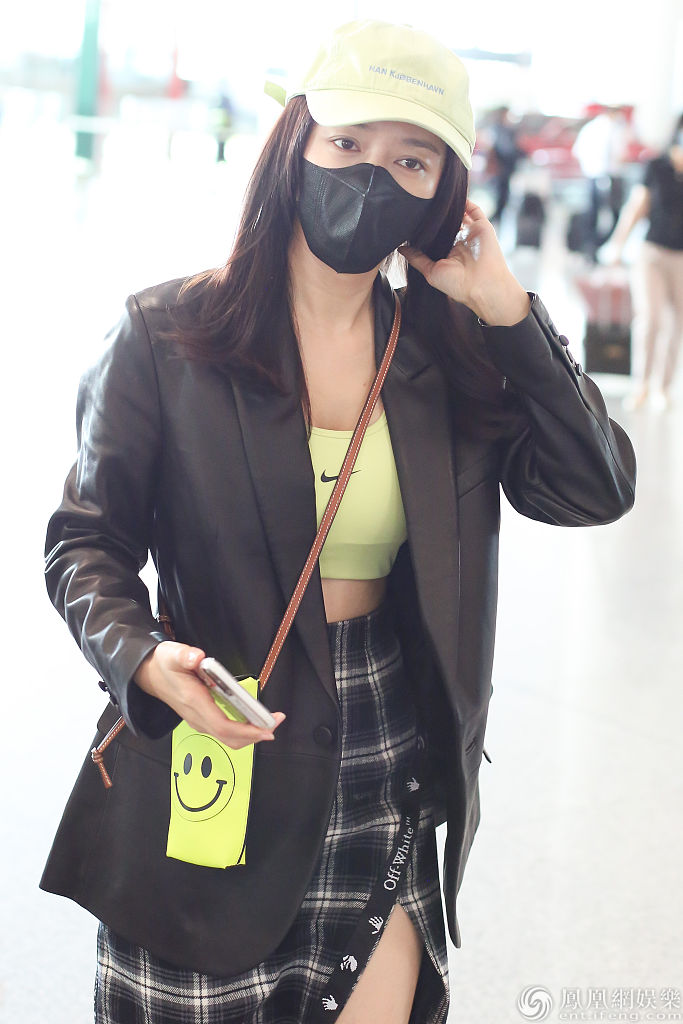 2020年9月19日,北京,秦岚现身机场。她戴着小黄帽穿皮西装外套搭配短背心、开衩裙秀纤腰美腿,笑脸挎包时尚可爱,为粉丝签名挥手道别亲切感满满。