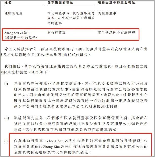 根据招股说明书透露,今年32岁的钟墅子毕业于美国加州大学,获美国加州大学欧文分校英语专业文学学士学位。他于2014年1月加入农夫山泉,2017年6月开始担任非执行董事,负责对业务计划、重大决策及投资活动提供意见。2020年1月起,钟墅子担任养生堂品牌中心总经理。