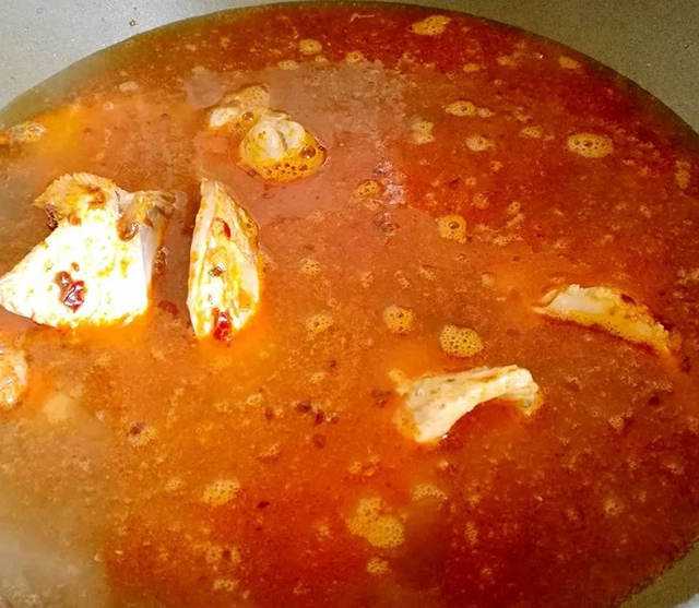 3、最后加足够量的开水 酱油 盐 糖 炖煮20分钟左右 把腌好的鱼肉一片一片的放入锅中 划散 炖煮5分钟后 全部倒在铺好油菜和黄豆芽的盆中 上面撒上炸好花椒粒红辣椒段,另起锅倒入花椒油 烧至略微冒烟后 浇在装有水煮鱼片的盆中即可上桌开吃啦~