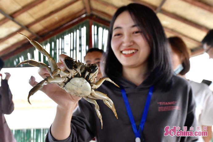 如今垦利区标准化养殖面积发展到3万亩,占东营市的绝大部分。按照三产融合发展理念,在当地投资1.5亿元建设了大闸蟹产业技术研究院,与上海海洋大学、山东省淡水渔业研究院、中科院水生所开展合作,为产业发展提供技术支持。