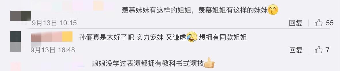 网友们也纷纷称赞孙俪,虽然不是科班出身,但演技真的很不错,还夸赞孙俪作为姐姐很是大气温暖。