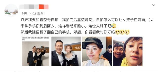 29日,对于嫌弃的说法,孙俪发微博解释道,张嘉益是因为觉得孙俪来拍照显脸大,因此才皱眉头说自己来拍,孙俪对比自己和邓超自拍打趣的同时,称赞张嘉益有绅士风度。