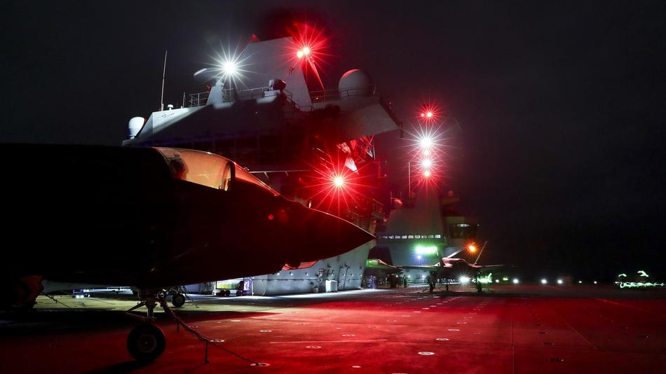 近日英国“伊丽莎白女王”号航空母舰进行了一场舰载机夜间起降训练,画面美轮美奂。4架英国皇家空军的的617中队(毁坝者)和10架美国海军陆战队VMFA-211(威克岛复仇者)的F-35B战斗机部署在英国皇家海军“伊丽莎白女王”号(R08)航空母舰上,这是自1983年“竞技神”号航母之后,皇家海军航母上部署的最大规模机群,共有14架F-35B战斗机和8架梅林直升机,也是目前世界上最大规模的第五代舰载战斗机航空群。