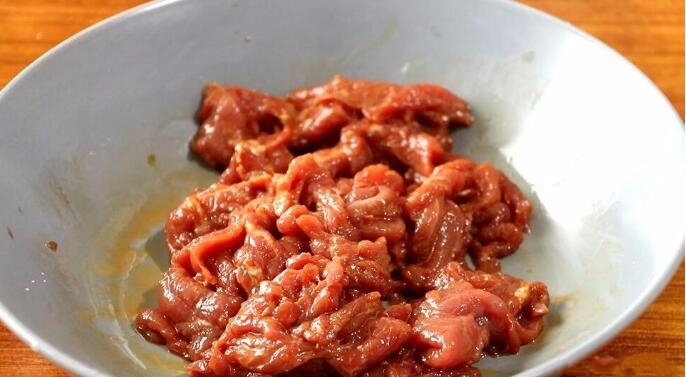 1、腌制牛肉的时候,不要加入食盐,加入食盐会使得炒出来的牛肉变柴,口感不好。