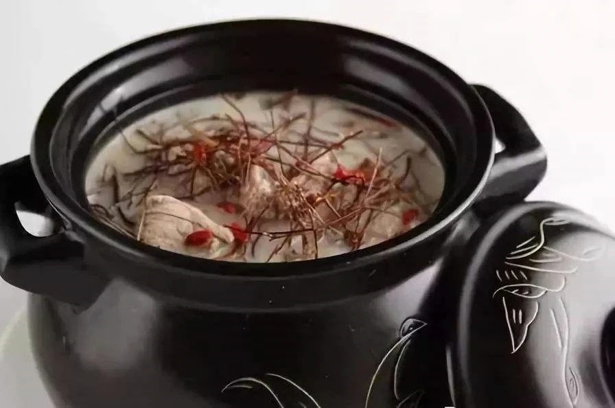 史料也印证了这一点,1974 至 1975 年,美国人类学家尤金·安德森和夫人来到香港青山湾,调查一户吴姓人家五个月的饮食,记录吴家 152 顿主餐的内容。在这 152 顿饭中,有两次赶上吴家的成年人身体不适,吴家人就将一只小鸡和一些滋补药草一起“长时间地炖汤”,这是现代老火靓汤的最早文字记载!