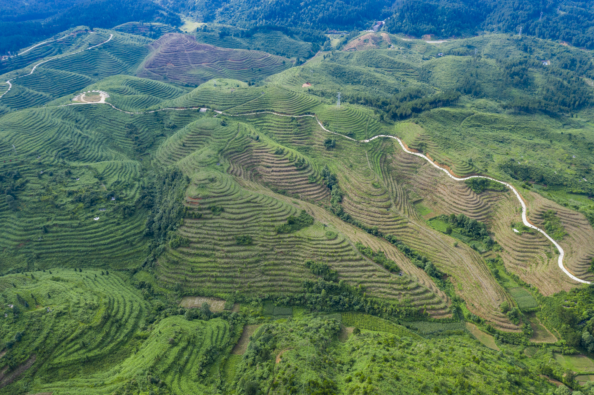 这片位于贵定县沿山镇的梯田依山而造,看起来如诗如画,不过也非常陡峭,一条盘山路蜿蜒曲折,与山顶的观景台连接在一起,仿佛一条项链镶嵌其中。说起这梯田真是不简单,人家这里种植的都是山王果刺梨,刺梨营养丰富,可以制成多种饮品进行销售,极大地带动了当地的农业发展和乡村振兴。