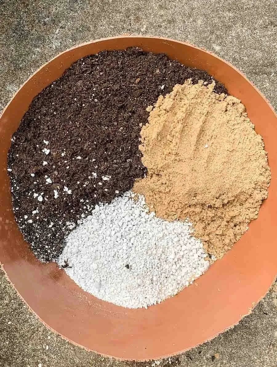 我也跟大家说过我常用的盆栽土配方,就是泥炭土+粗椰糠+珍珠岩以5:3:2的比例混合,这个配方可以栽种绝大部分的盆栽植物。