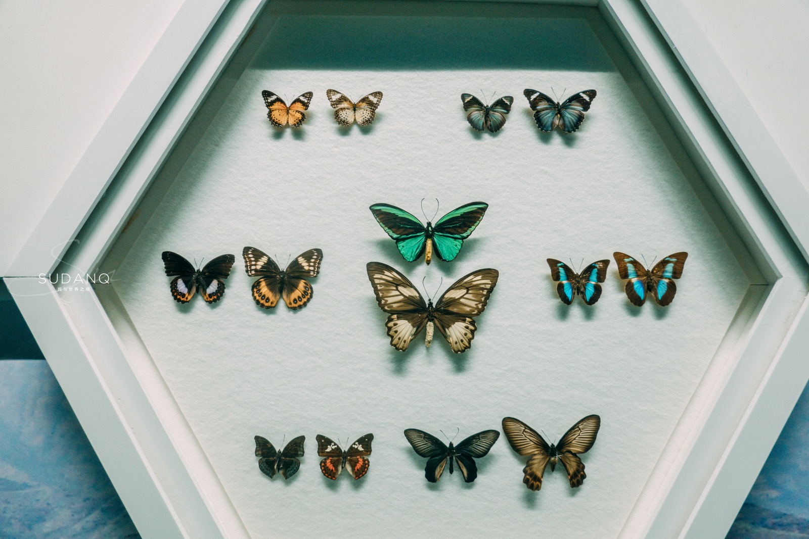 但最吸引人眼球的还是全世界各地不同品种的蝴蝶标本,这些蝴蝶标本仿佛是将全世界各种色彩汇聚一堂。