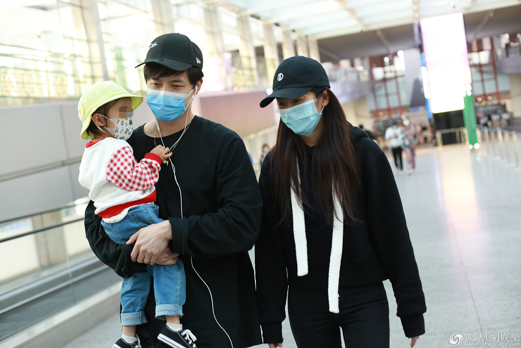 10月3日,北京,付辛博、颖儿带女儿亮相机场。