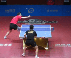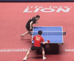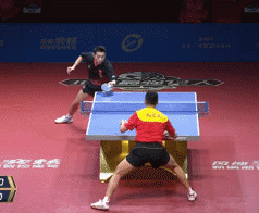 如果当自己的横打质量不是很高的时候,这时候许昕就不会提前侧身,而是会更多的去看住自己的正手空挡,见上图。从动图中我们可以看到许昕的直板横打被樊振东防到正手直线后,许昕能够迅速移动到正手位,用自己的正手完成反攻,许昕的连扳正手拉球落点选择也是非常合理,先压到樊振东反手位,在看到樊振东想侧身的时候,拉了一个樊振东的正手空挡(樊振东的提前侧身和前面说的许昕提前侧身是一样的技战术,反手高质量然后想直接侧身,只是樊振东反手没有给出大的角度,被许昕反拉成功)。