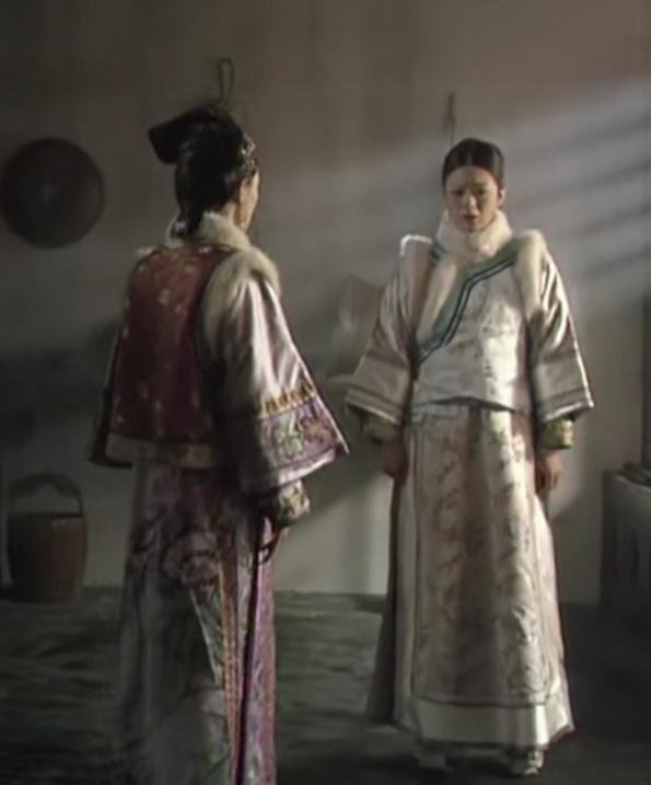 下一个镜头转至冷宫,甄嬛穿的居然是当年华妃盛世时期借用“夕颜”羞辱其的蜀锦,妥妥的通过衣服展示一个胜利者的心态,颇有用心,看看咱俩谁是夕颜,到头来到底是谁讽刺了谁,这一日你一身素衣,我一身蜀锦,何其尊卑有别!
