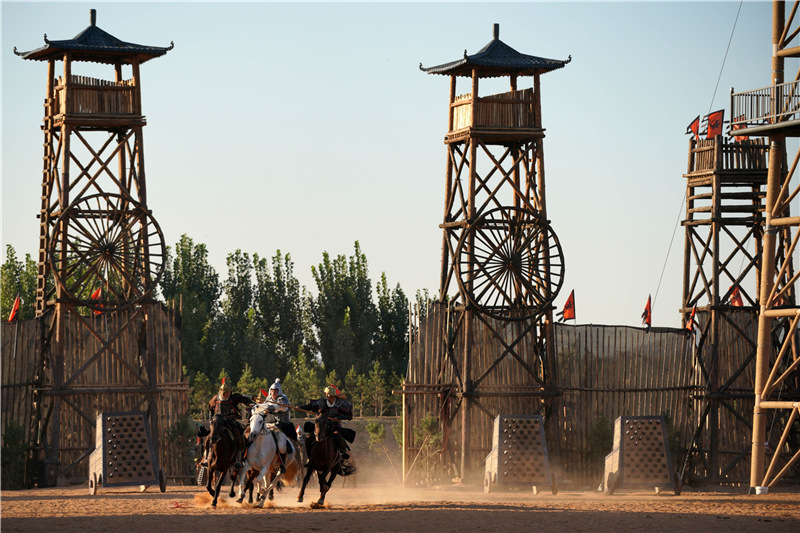 长假期间,实景演出“赵子龙大战长坂坡”在河北省临城县上演。来自河南、内蒙古、青海等地的130多位演员和40多匹马参演。新华社记者 邢广利 摄