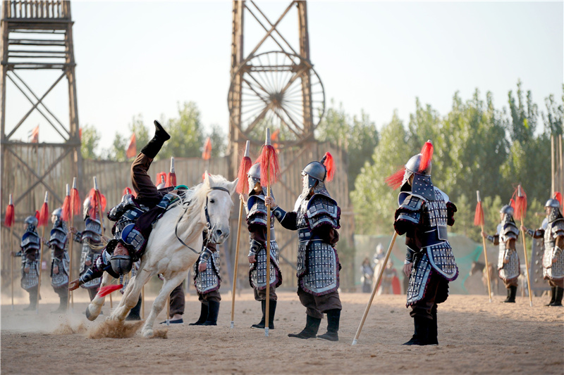 10月4日,演员在河北省临城县表演“赵子龙大战长坂坡”。