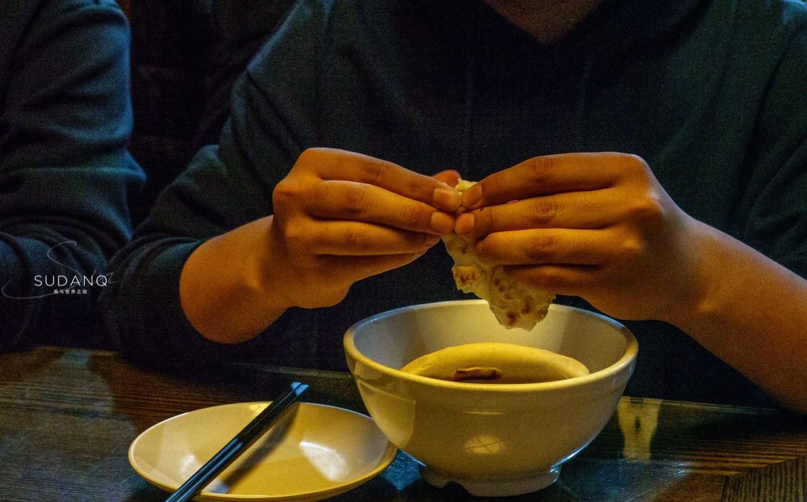 但掰馍却不简单。西安人认为从馍的一边一点一点“蚕食”,才能保证汤、馍不分离,使馍完全吸收鲜味。吃后饮“高汤”一碗,异香满口,顿觉神清气爽,精神倍增。