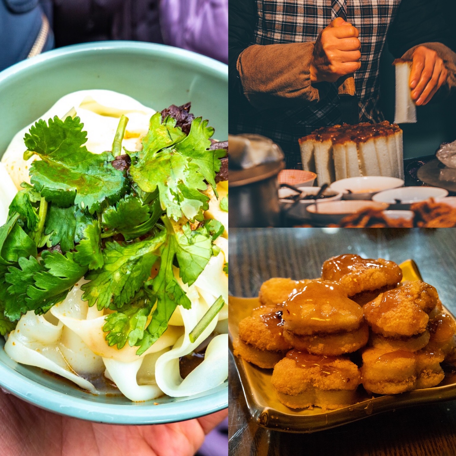 凉皮、米皮、擀面皮、羊肉水饺、韭饼、酸汤水饺、灌汤包子、镜糕、羊肉臊子饸、黄桂柿子饼、蛋花醪糟、芝麻烧饼、葱油饼、肉丸糊辣汤、辣子蒜羊血、八宝稀饭......