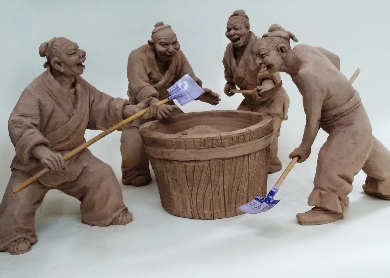 菏泽泥塑利用黄河淤积地下的胶泥为原料,经过晾晒、去杂质、捶打摔揉、醒放等步骤,使用纯手工捏制成各种人物、动物等形象,所塑作品按照真实严谨的比例结构,适当夸张又不浮夸的写实风格,不仅形似,而且以形写神。