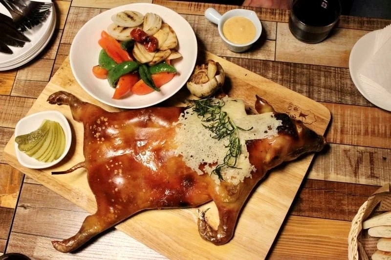 烧烤这个技艺,是人类最早掌握的烹饪技术,也正因此,很多国家也有烤乳猪。比如西班牙的Segovia,也有个著名的美食,烤乳猪,他们叫Cochinillo asado,这可是当地必点菜。选用刚出生两个星期的乳猪,把小猪仔的正面沿着脊椎从头到尾,将其剖开,放入陶瓷锅加入一些月桂叶,再注满四公升的水送入烤炉,使用约120度的温度烤一小时的时间,进烤炉时,猪仔是背朝下腹向上,烤过约15分钟后,再翻转猪身直到成品出炉,之后厨师拿出专用的叉子将整锅烤熟的烤乳猪端出,并且轻刷碎蒜泥与猪油在乳猪身上。做这道菜的餐厅在罗马水道桥前的百年老餐厅Mesón De Cándido ,这间可是从公元1786年就营业,不过,听说最近也关门了,新冠病毒使得游客几乎清零,这家连二战都没关门的老店,也不得不关张,真可惜!