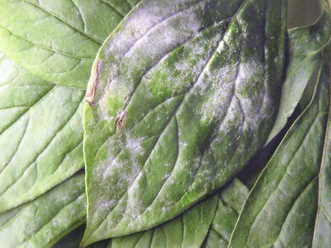 如果你如果发现植物的叶片上出现一些粉末状的白色物质,且用清水可以擦拭干净,那基本就是感染白粉病了。这种真菌病害通常会在一些通风不好,温度较高或比较干燥的环境下滋生,