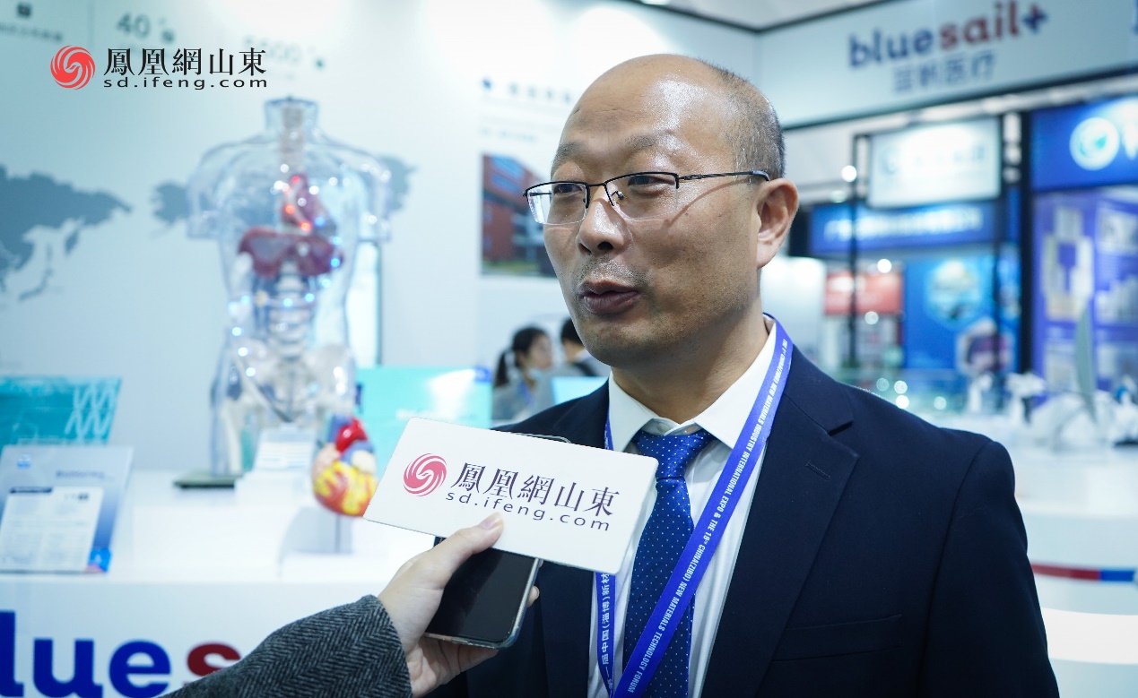 动态监测、实时消毒的空气消毒机器人巡馆展示,心脏瓣膜、心血管支架等手术用新型产品悉数亮相,位于淄博会展中心A馆的蓝帆医疗展厅科技感十足,吸引了众多企业合伙人及观展市民的注意。蓝帆医疗战略发展总监张永臣介绍,本次公司展出面积达108平米,是空间最大的参展企业。参展产品50余件,均为新材料、新技术、新药品的联合应用。从产品材质到应用范畴,全方位、多角度、近距离地向观众展现全球现代医疗行业的前沿产品。